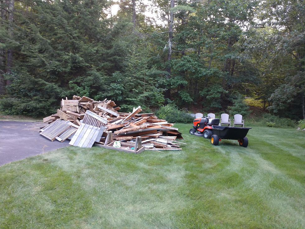 Although we perform demo work daily as part of our projects, this was a particularly impressive demo-only project. This beautiful Amherst, NH home had a large, multi-level deck with a built-in sunken hot tub our clients wanted removed. They also wanted a crumbling shed removed as well. (When we were all done, we repaired the siding on the house, some rotten framing, and built temporary stairs until they have their new stone patio installed.)